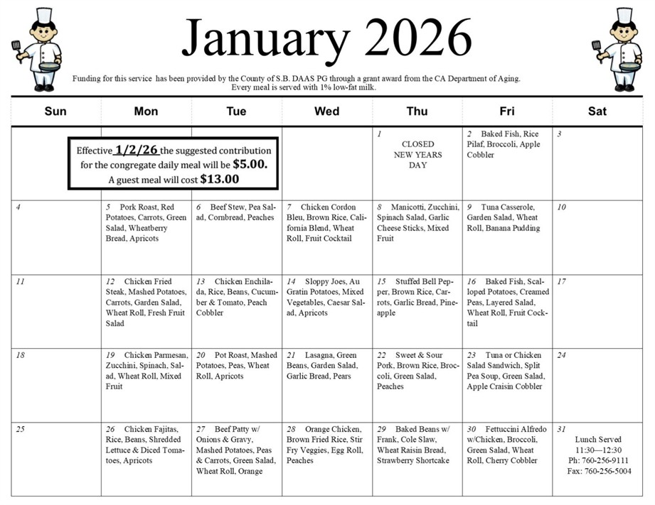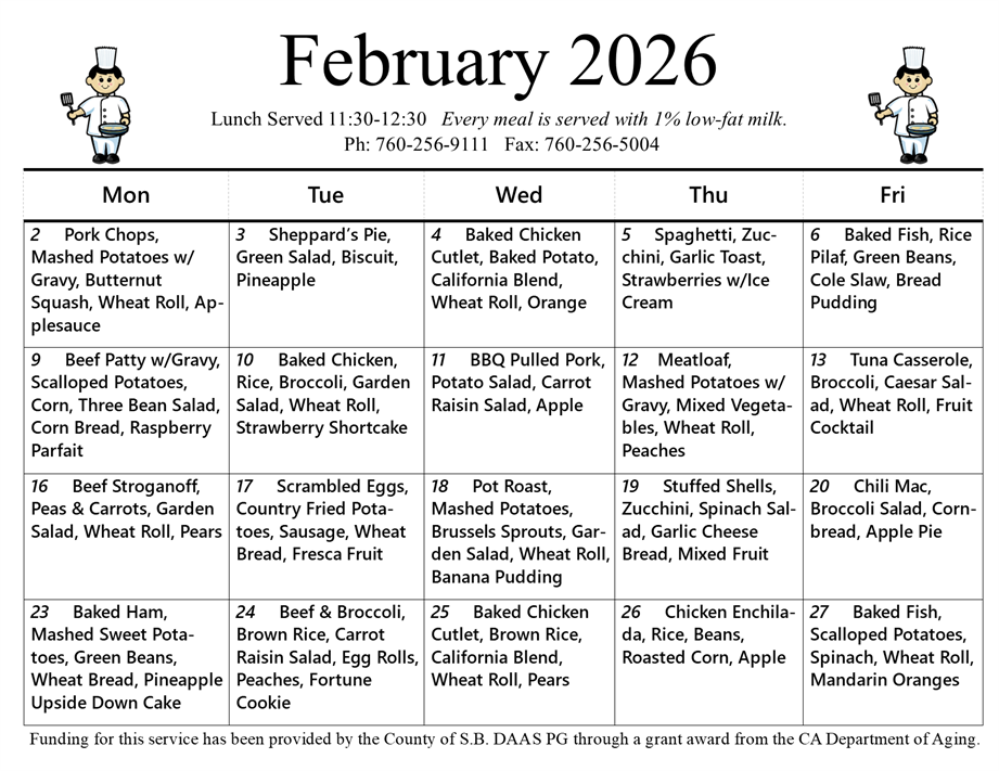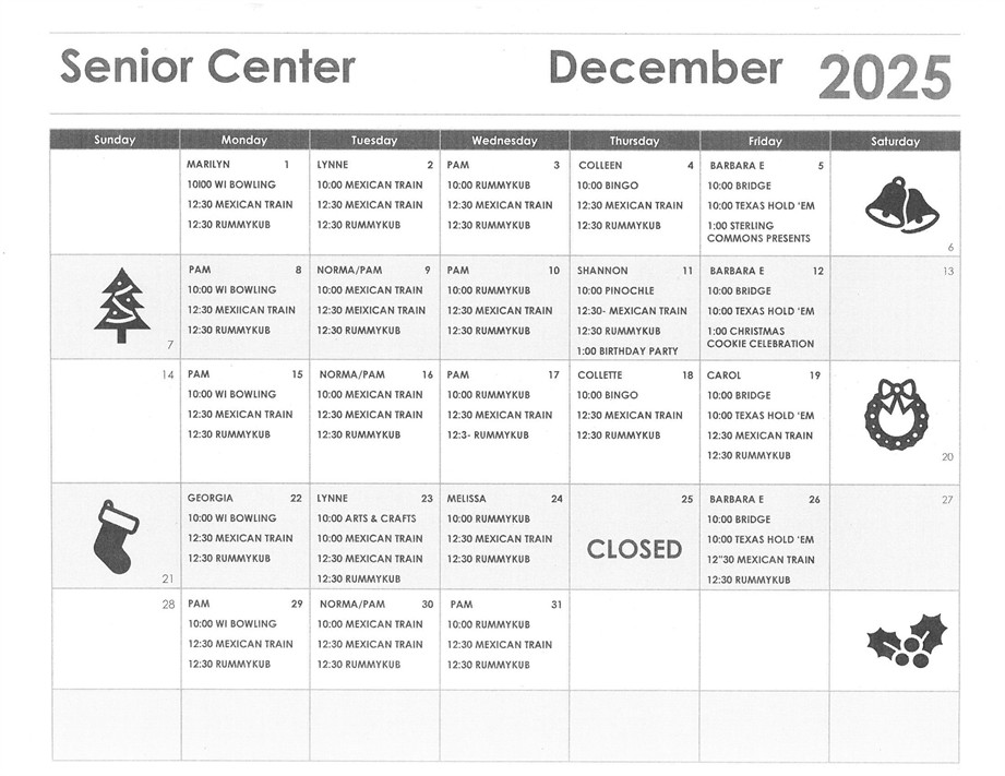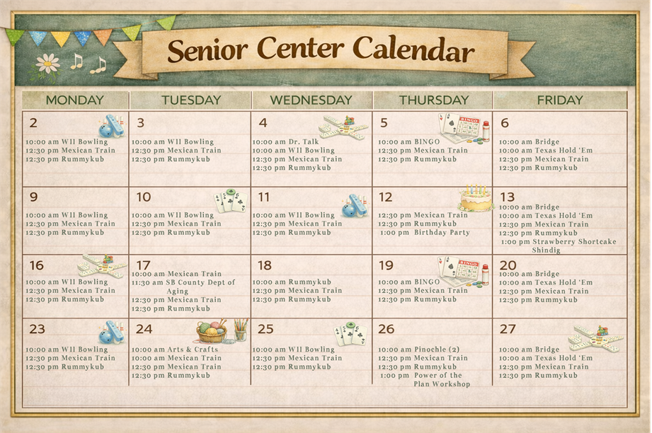 The Senior Center is open Monday – Friday from 10:00 am to 2:00 pm.