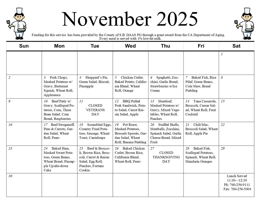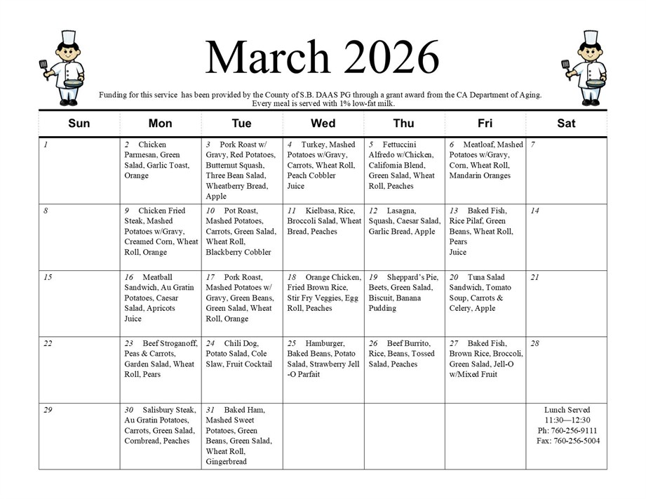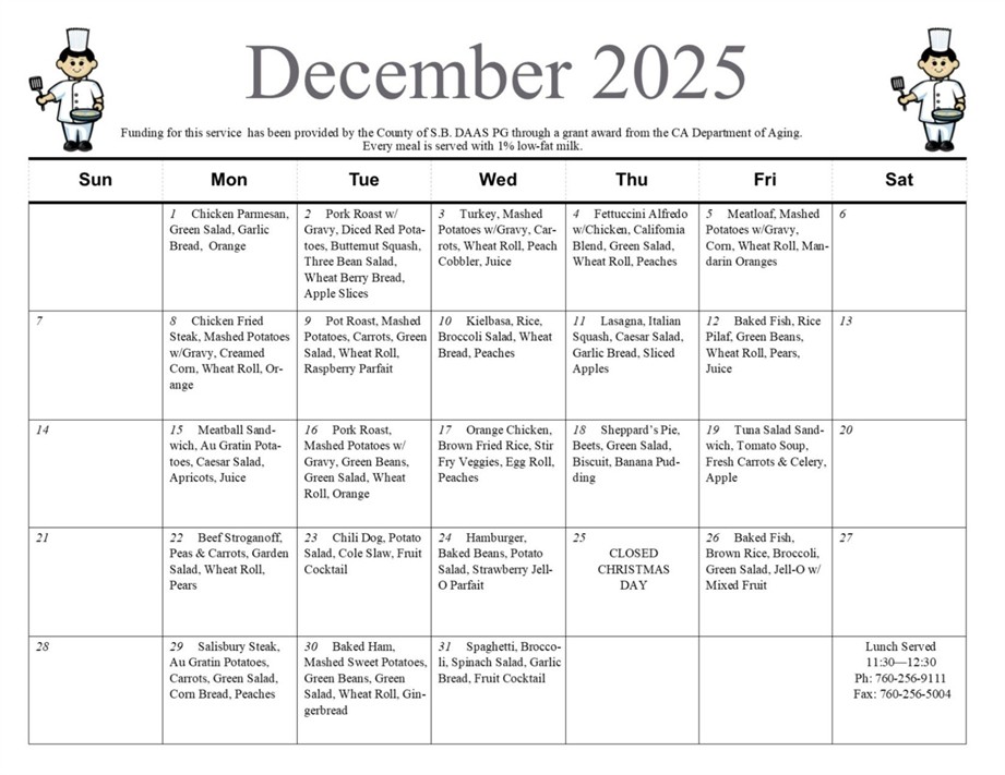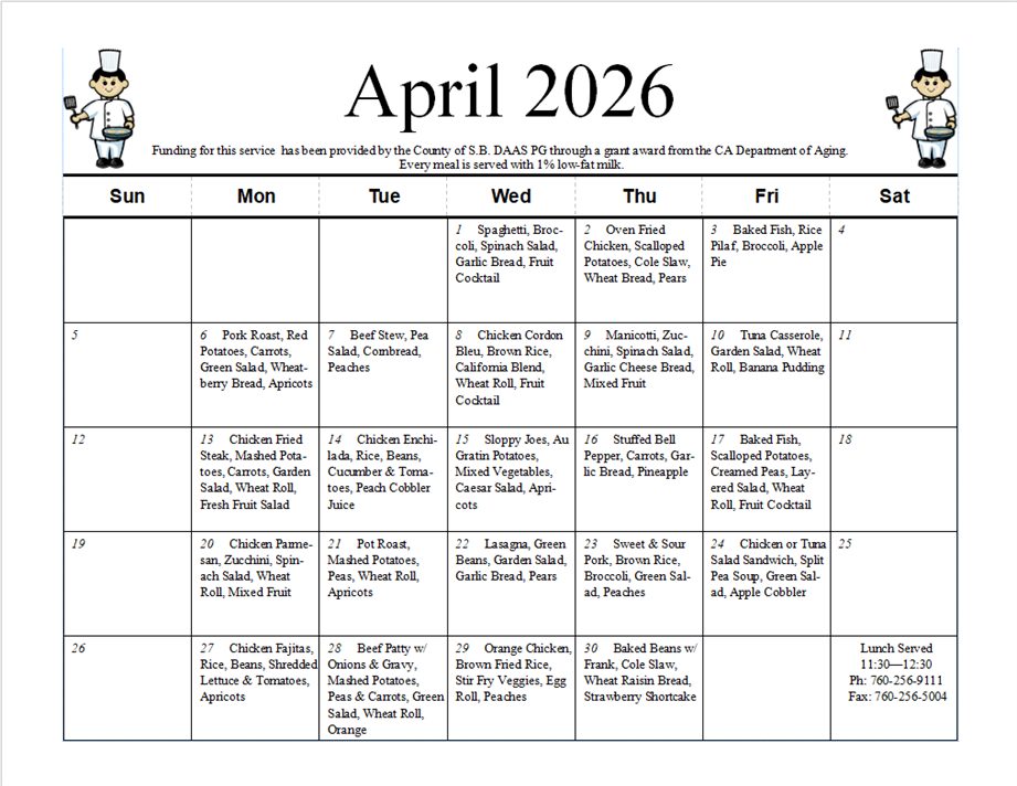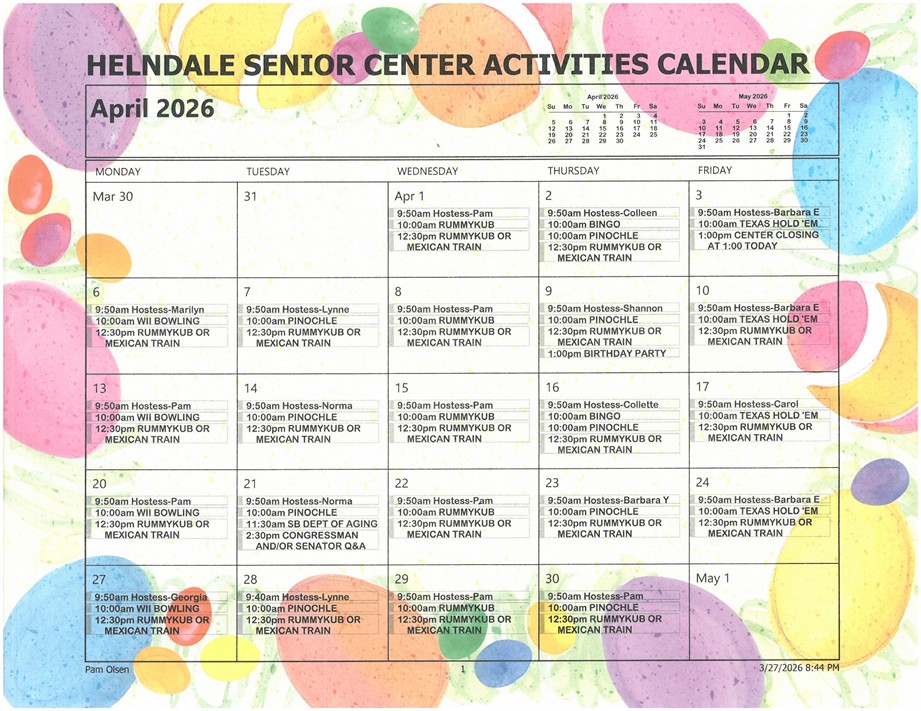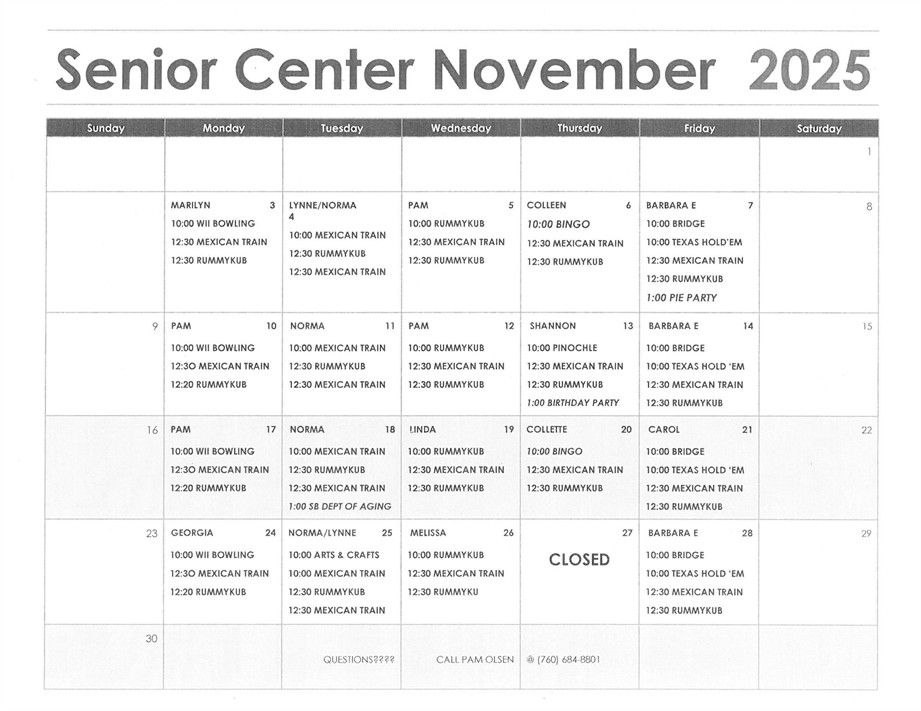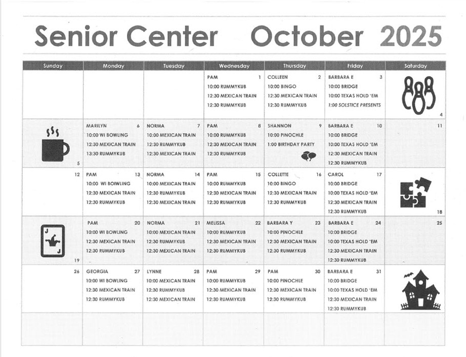 The Senior Center is open Monday – Friday from 10:00 am to 2:00 pm.